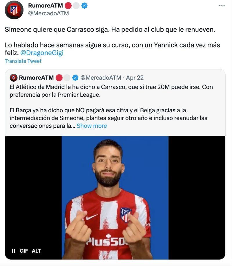 Yannick Carrasco apareció como opción para la banda izquierda del FC Barcelona. El equipo de Xavi Hernández decidió ir en busca del extremo izquierdo pero Atlético de Madrid no estaba muy convencido. Le comentó al futbolista que solo se iría por 20 millones de euros y preferentemente si la oferta provenía de la Premier League.