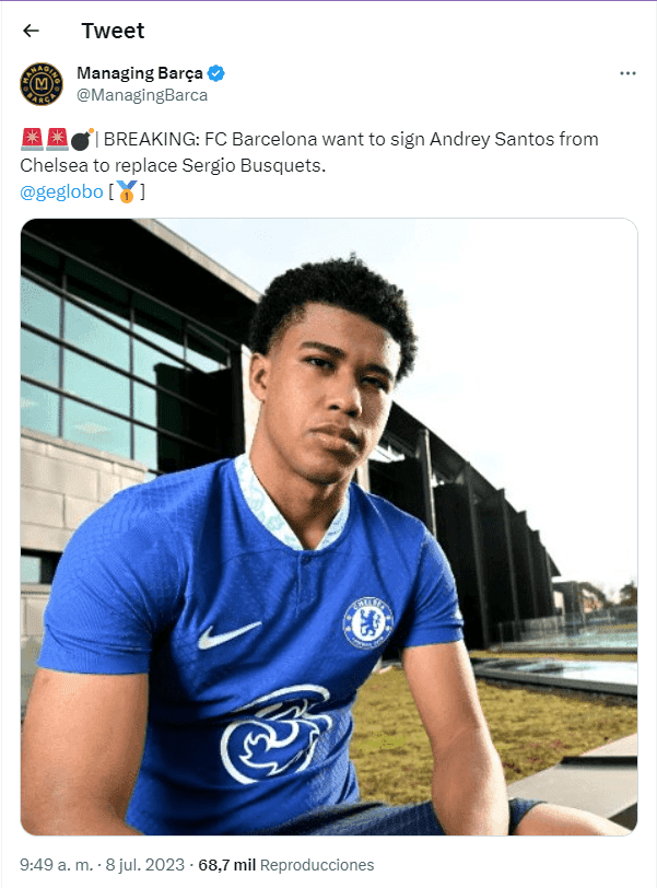 Chelsea compró a Andrey Santos en 2022 por solo 12,5 millones de euros como una inversión que salió de gran manera y y ahora tiene entre sus manos un diamante en bruto para explotar. Si FC Barcelona lo quiere fichar, deberá poner sobre la mesa una gran cantidad mayor de euros para poder contratarlo.