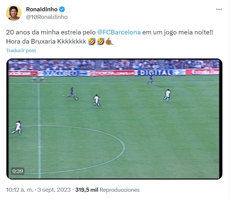 Ronaldinho recordó en su cuentas personales su primer partido oficial en FC Barcelona. Es que hoy se cumplen 20 años de su debut en el primer equipo blaugrana, marcando además un golazo contra Sevilla. El partido fue recordado porque arrancó pasada las 00 horas y terminó cerca de las 2 de la madrugada.