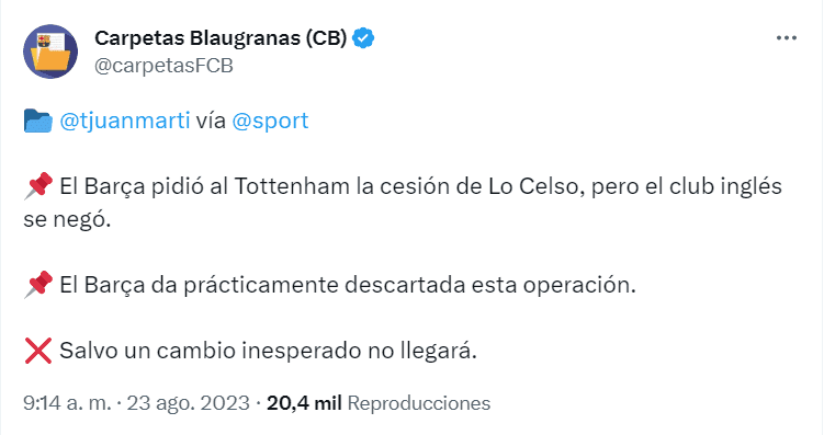 De acuerdo a la información de Juan Martín de Sport, FC Barcelona está interesado en Giovanni Lo Celso, el mediocentro argentino con presente en Tottenham. Su nombre ha sonado en varias oportunidades dentro del actual mercado de pases pero la negociación por el ex Villarreal FC no es nada sencilla.