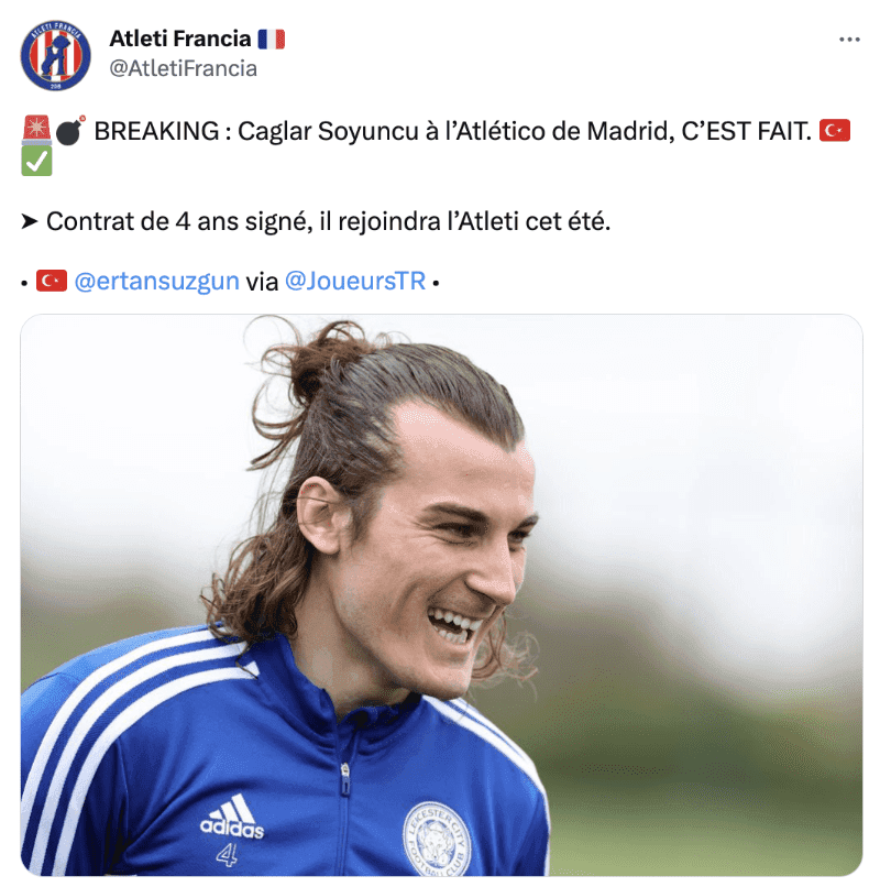 Caglar Soyuncu es defensor central del Leicester City pero termina su contrato y ha decidido no renovar, para llegar a costo cero al Atlético de Madrid para que lo dirija Diego Pablo Simeone. Con 26 años, el jugador dejará la Premier League para llegar a España y el contrato que se firmó fuer en principio por 4 temporadas, según Ertan Süzgün.