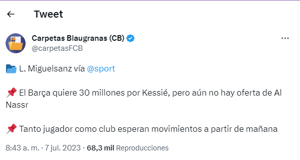 En caso de que se dé la transferencia de Fran Kessié al Al Nassr, según la información de Sport, FC Barcelona va a conseguir el dinero que precisa para poder terminar de concretar los papeleos de Ilkay Gundogan y Vitor Roque, y así, librarse del asedio del Fair Play Financiero. Para Xavi Hernández, los dos serían fundamentales de cara a la inminente campaña.