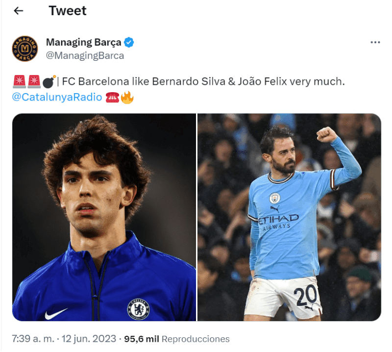 Joao Félix tiene un valor de mercado, para Atlético de Madrid, de 100 millones de euros. Esa cifra es la que ha fijado como piso el Colchonero, un número que por caso, Chelsea decidió no pagar. De acuerdo a Radio Cataluña, el portugués gusta y mucho en FC Barcelona, como también su compatriota Bernardo Silva.