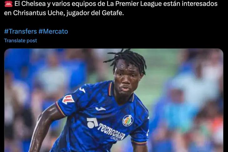 Chrisantus Uche, jugador del Getafe y una de las estrellas de la liga española, ahora es pretendido por algunos equipos de la Premier League, de acuerdo a información de Aaron Domínguez. Real Madrid lo estuvo siguiendo pero finalmente se durmieron y ya no lo llevaron a sus filas, perdiendo la gran oportunidad y por solamente 5 millones de euros.