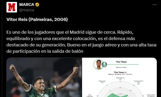 Sin embargo, la operación no será fácil, ya que el Palmeiras no quiere desprenderse de uno de sus jóvenes talentos. Además, habrá otros grandes clubes europeos interesados en el jugador. Vitor Reis es un nombre que hay que seguir de cerca. El joven brasileño tiene todas las cualidades para convertirse en uno de los mejores defensores del mundo y el Real Madrid está dispuesto a apostar por él.