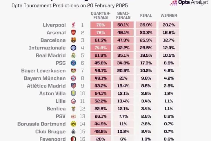 La emoción de la Champions League se intensifica a medida que los equipos se preparan para los octavos de final. En este contexto, el superordenador de Opta, una herramienta de análisis predictivo, ha revelado su lista de favoritos para levantar la 'Orejona', generando diversas reacciones en el mundo del fútbol.