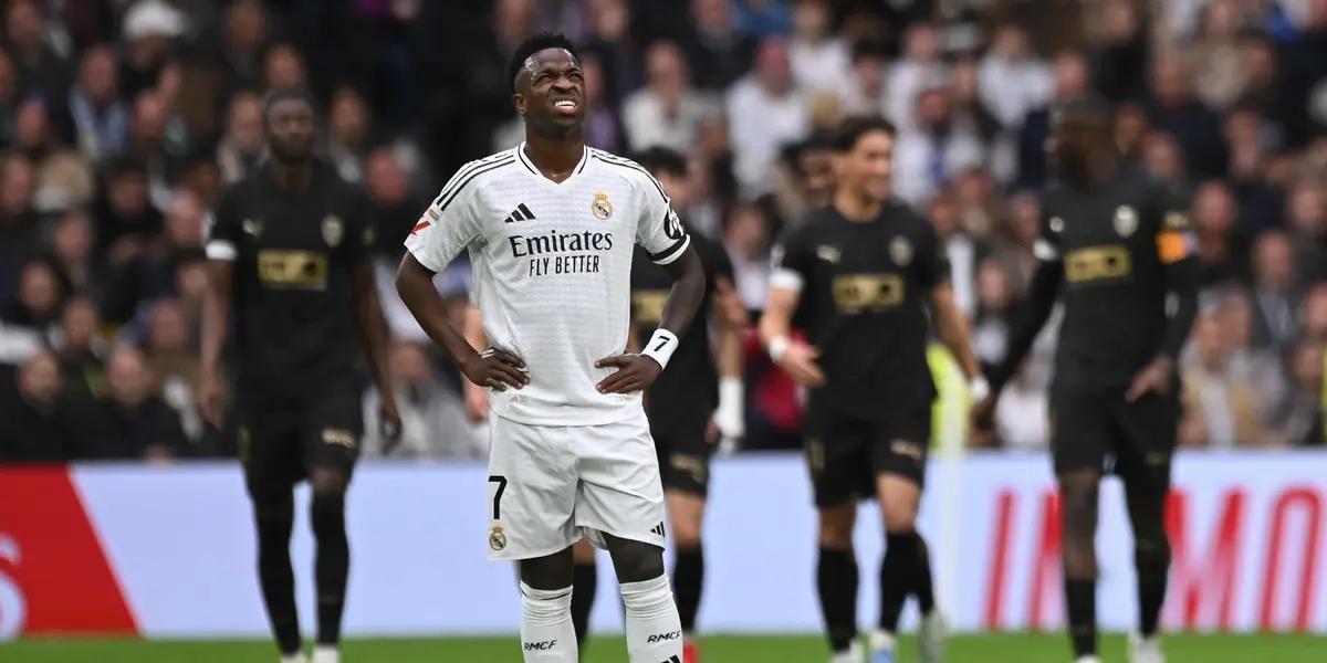 El clima en el Real Madrid se volvió tenso tras la derrota ante Valencia y la figura más apuntada fue Vinicius Jr. A pesar de haber convertido el único gol de su equipo, el brasileño no se salvó de las críticas. Los aficionados se fueron enojados y en las afueras del estadio dejaron mensajes lapidarios contra él: “Vinicius fuera ya”, “A la calle Vinicius”, y más frases que marcaron el enojo del madridismo.
