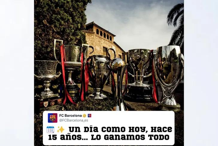 Luego que el Real Madrid levantó la Copa Intercontinental, ganando 3 a 0 al Pachuca en Lusail, el FC Barcelona presumió su sextete que lo conseguía en estas fechas. En las redes sociales el cuadro blaugrana sacó pecho por ser de los pocos equipos en el mundo en conseguir esta proeza, de levantar trofeos en todos los torneos en los que compitió.
