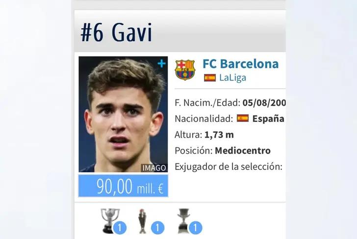 Pese a no haber tenido la oportunidad de consolidarse en la selección alemana bajo las órdenes de Hansi Flick, Gavi se ha convertido en una de las piezas fundamentales del FC Barcelona y su valor de mercado así lo refleja. Con apenas [edad] años, el centrocampista se ha revalorizado hasta alcanzar los 90 millones de euros, según Transfermarkt.