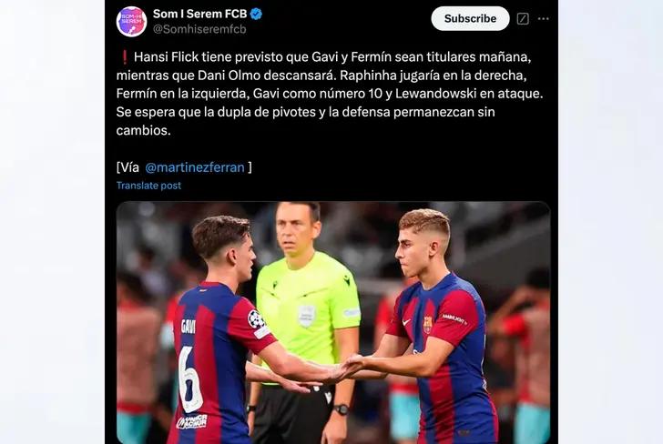 "Necesitamos más dinamismo y verticalidad en nuestro juego. Gavi y Fermín nos aportan esa frescura y esa capacidad de desequilibrar", aseguró Flick en la previa del partido.