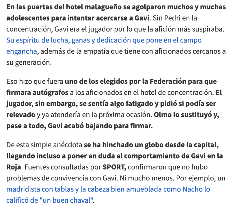 Incluso, pese al cansancio que mostró Gavi, luego se acercó para firmar autógrafos y atender a los aficionados españoles que reclamaban su presencia. Por ahora existen estas dos versiones sobre lo ocurrido en la Selección Española. De momento el jugador del FC Barcelona no se ha pronunciado al respecto.