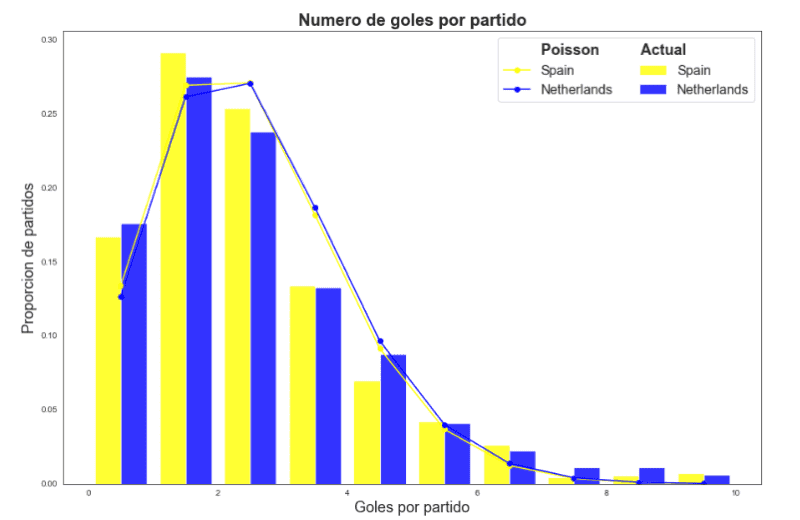 Si el rival fuese Holanda o Países Bajos, el resultado también se muestra favorable para el equipo de Luis Enrique aunque si el resultado es abultado en goles convertidos por ambos países, aumentan las chances de que Holanda le gane a la Roja.