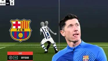 (FOTO) Insólito, por esto el VAR anuló el gol del Lewandowski en Real Sociedad vs FC Barcelona